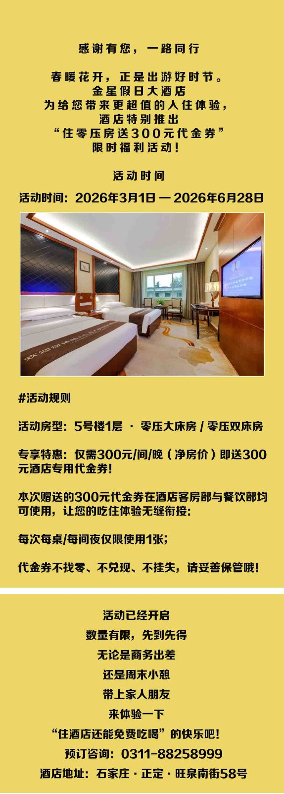 • 012026-03 住酒店=不花钱?3月1日起,入住零压房送300元代金券,吃住全包!